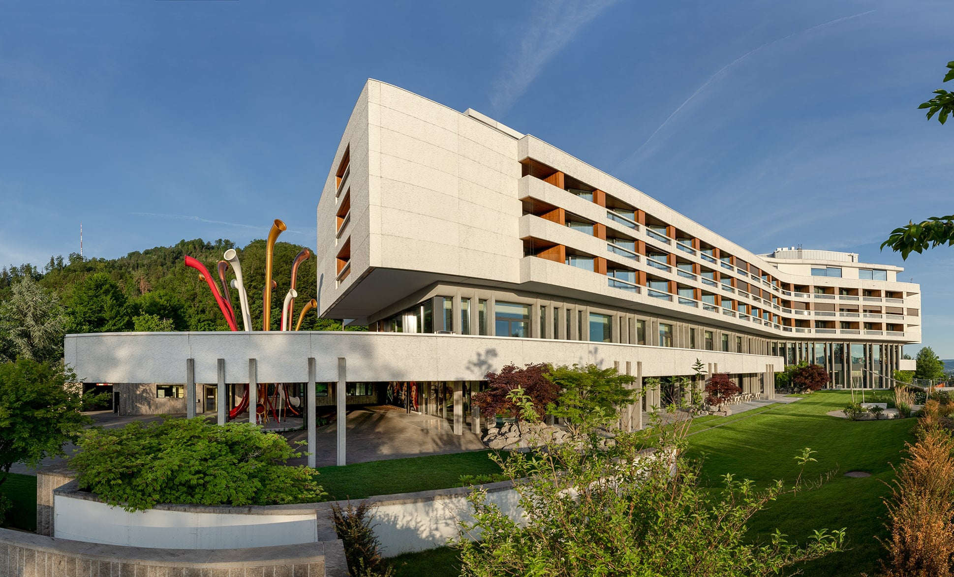 FIVE Zurich liegt an den Hängen des Uetlibergs mit Blick über die Stadt. Es ist nur 3 km vom Zürcher Stadtzentrum entfernt und 20 Minuten mit dem Auto vom Flughafen Zürich, mit direktem Zugang zu öffentlichen Verkehrsmitteln in wenigen Gehminuten.